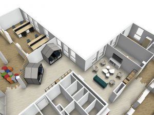 Conception 2D et 3D – Space Planning aivec échanges pro-actifs. Elaboration de projet architectural et environnemental valorisant un espace de travail tout en tenant compte des contraintes du site, aux moyens techniques et acoustiques intégrés au projet pour proposer les meilleures solutions.
